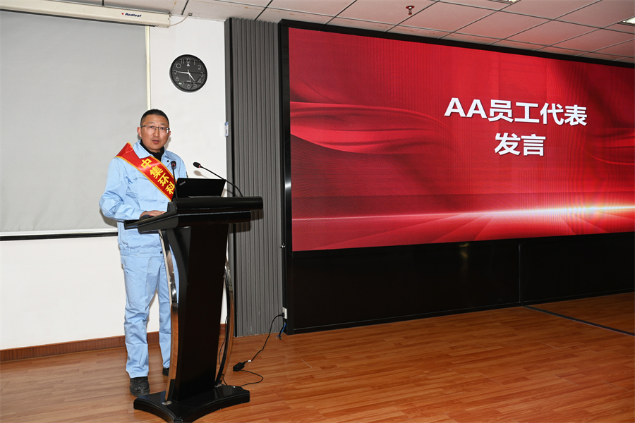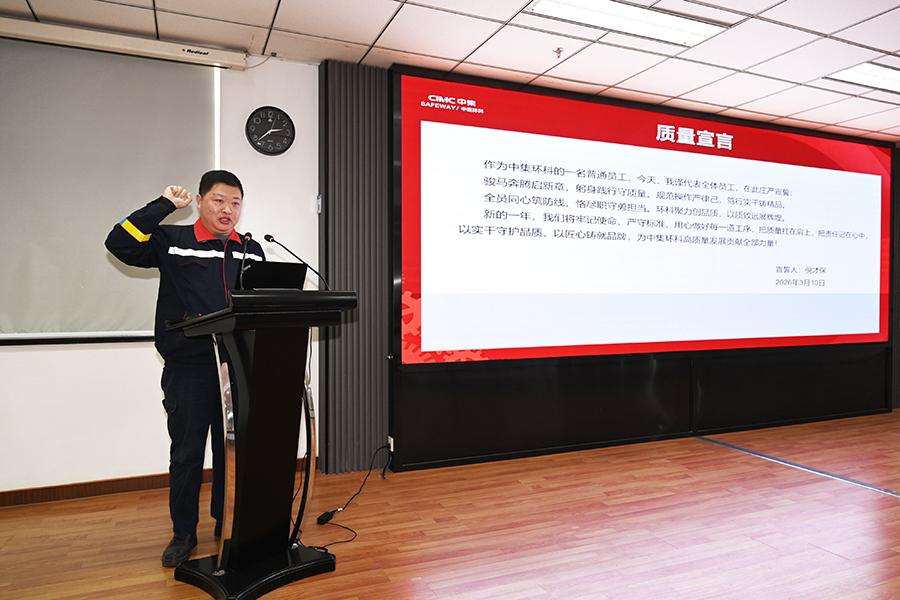 誓言于心,践之于行。质量和安全是公司发展的生命线和压舱石,在主题宣言环节,生产制造中心标罐生产部倪才保、曹燕飞分别作为员工代表进行质量宣言与安全宣言,以此号召全体干部员工,都能将质量意识、安全意识时刻牢记心中、落在实处,融入工作的每一个细节,以高标准、严要求,守护公司发展根基,助力公司高质量发展。